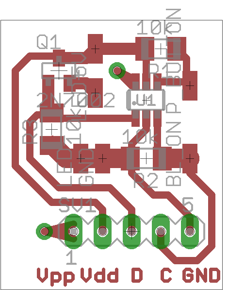 - SMD components (PIC 10F202T, N-channel FET BSS138 or 2N7002, 3x10k resistors 1206 types)