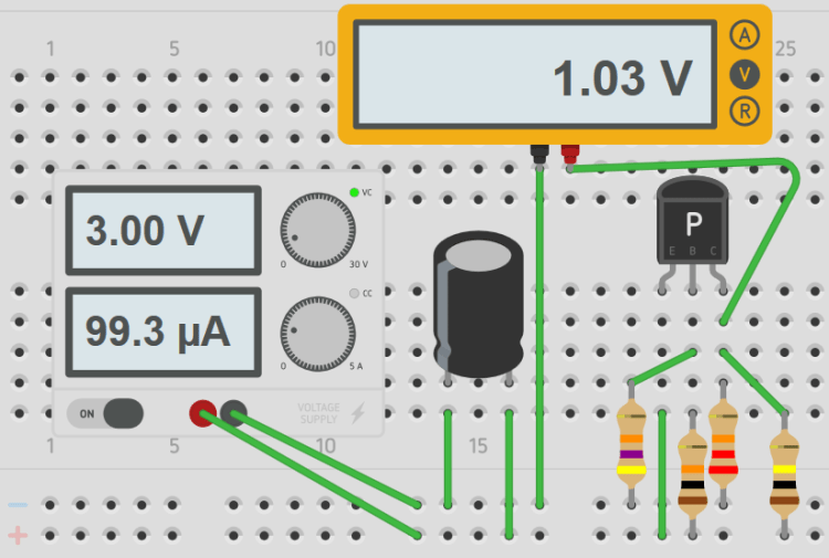 A Pololu 5V Step-Up Voltage Regulator U1V11F5.A BC557C PNP transistor.10 kOhm, 22 kOhm, 47 kOhm resitors.22-47 uF 16V capacitor.- 10 Ohm, 4.7 Ohm resistors.